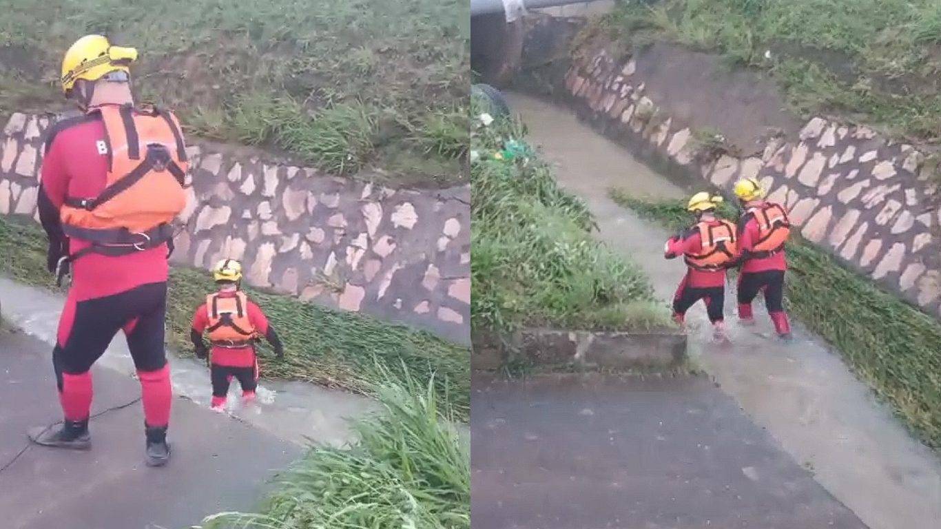 Segundo informações preliminares, o carro perdeu o controle devido à força da água. O motorista conseguiu sair pela janela e alcançou a margem em segurança, mas a passageira foi arrastada pela correnteza ao tentar deixar o veículo.