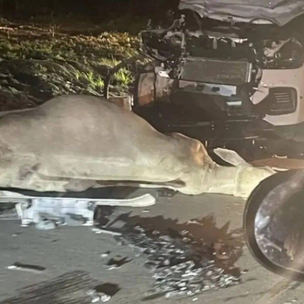 Um carro colidiu com um boi no início da noite de quinta-feira (5), na Avenida Doutor Silvio Matos, no bairro SIM, em Feira de Santana. O impacto causou a destruição da parte frontal do veículo. Até o momento, não há confirmação sobre feridos nem sobre o estado do animal.