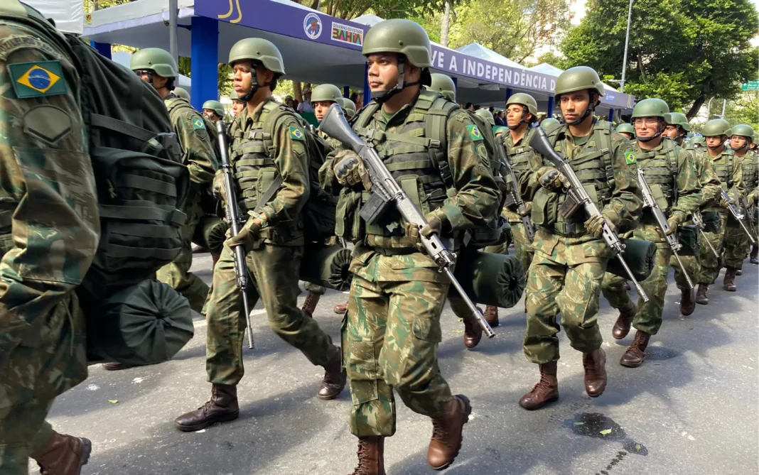 Evento ocorreu nesta quinta-feira (7), no Campo Grande. Antes do desfile, o governador Jerônimo Rodrigues (PT) fez o hasteamento da bandeira ao lado do prefeito Bruno Reis (União Brasil). Celebração do 7 de Setembro no Campo Grande, em Salvador Natally Acioli/g1 A celebração do 201º aniversário da Independência do Brasil começou com chuva, nesta quinta-feira (7), em Salvador. Depois das 8h, o sol surgiu pelas euas do Campo Grande, onde ocorreu o tradicional desfile cívico com apresentações das fanfarras escolares, das polícias civil e militar, além do Corpo de Bombeiros, do Exército e da Marinha. 📸 FOTOS: veja imagens do desfile de 7 de Setembro em Salvador Governador da Bahia, Jerônimo Rodrigues, participa do desfile da Independência do Brasil Antes do desfile cívico, o governador Jerônimo Rodrigues (PT) recebeu as honras militares e, em seguida, fez o hasteamento da bandeira ao lado do prefeito Bruno Reis (União Brasil) e do comandante da 6ª Região Militar, general de divisão Marcelo Arantes Guedon. Após o hasteamento, o governador falou do papel da Bahia na construção de um país soberano desde a independência. “A contribuição da Bahia, primeiro por ter sido, na história da independência, um estado que sempre contribuiu com as forças da defesa da nossa soberania, é um estado que tem um povo trabalhador. Temos também um potencial econômico muito forte com o agronegócio, minério, energias renováveis, pólos industriais”, disse Jerônimo. “Acima de tudo, o povo da Bahia contribuiu e continua contribuindo com o processo, de cada vez mais, ser um país independente”, ressaltou o governador. Governador Jerônimo Rodrigues e prefeito Bruno Reis participam do desfile da Independência A apresentação das 12 bandeiras históricas abriu o desfile. Logo depois, foi a vez do subgrupamento de praças responsáveis por conduzir navios e da banda dos fuzileiros navais. Os olhares atentos do público acompanhavam cada momento do desfile, a exemplo de Edfran Guerra, que estava na companhia dos filhos. “Minha avó, quando eu era criança, me trazia para que a gente despertasse esse dever cívico e eu procuro trazer eles [filhos], porque desde criança a gente precisa ter esse amor a pátria e valorizar essa data”, disse. Quem também estava na expectativa para ver o desfile foi a atendente de bar Andrea Batista. Ela saiu do bairro de Itapuã para prestigiar as apresentações no Campo Grande. “Cinco horas da manhã eu saí de casa com eles, porque é a primeira vez delas [das filhas]. Ele [filho] não, ele já tinha vindo antes”, explicou. Celebração do 7 de Setembro no Campo Grande, em Salvador Natally Acioli/g1 Este ano, 10 unidades escolares da rede estadual de ensino participaram do desfile na capital baiana, que contou com o envolvimento de, aproximadamente, 600 estudantes nas tradicionais fanfarras. Também teve a participação de alunos da rede municipal, além daqueles que estudam nas esolas da Polícia Militar e do Exército. A Polícia Militar da Bahia também desfilou com 906 representantes da corporação, incluindo militares das novas unidades, como os Batalhões de Proteção à Mulher, de Policiamento Escolar, de Prevenção a Furtos e Roubos de Veículos e o de Patrulhamento Tático Móvel (Batamo). Além do desfile cívico, 935 policiais militares fizeram o patrulhamento nas ruas, bem como o isolamento de todo o trajeto do desfile, o policiamento ostensivo nos principais corredores de tráfego, pontos de ônibus, entorno das estações de metrô e de transbordo, nas vias de acesso ao local do evento e em apoio às barreiras de trânsito. Celebração do 7 de Setembro é marcada por tradicional desfile cívico e militar em Salvador Já a Polícia Civil e o Departamento de Polícia Técnica (DPT) levaram ao Campo Grande um grupamento feminino, composto por servidoras das carreiras de delegada, escrivã e investigadora de polícia dos diversos departamentos da instituição. Os bombeiros também estiveram no desfile e, neste ano, deram destaque à campanha “Bahia Sem Fome” nas ruas, com o objetivo de incentivar a doação de alimentos, que podem ser entregues em qualquer quartel do Corpo de Bombeiros Militar da Bahia da capital e interior do estado. Também participaram do desfile a Associação de Veteranos do Corpo de Fuzileiros Navais, o Exército Brasileiro, a Força Aérea Brasileira, a Guarda Municipal, a Associação de Ex-Combatentes do Brasil, além de agentes do Serviço de Atendimento Móvel de Urgência (Samu). Militares desfilam no 7 de setembro Natally Acioli/g1 Militares se preparam para o desfile em Salvador Natally Acioli/g1 Veja imagens do desfile de 7 de Setembro em Salvador.