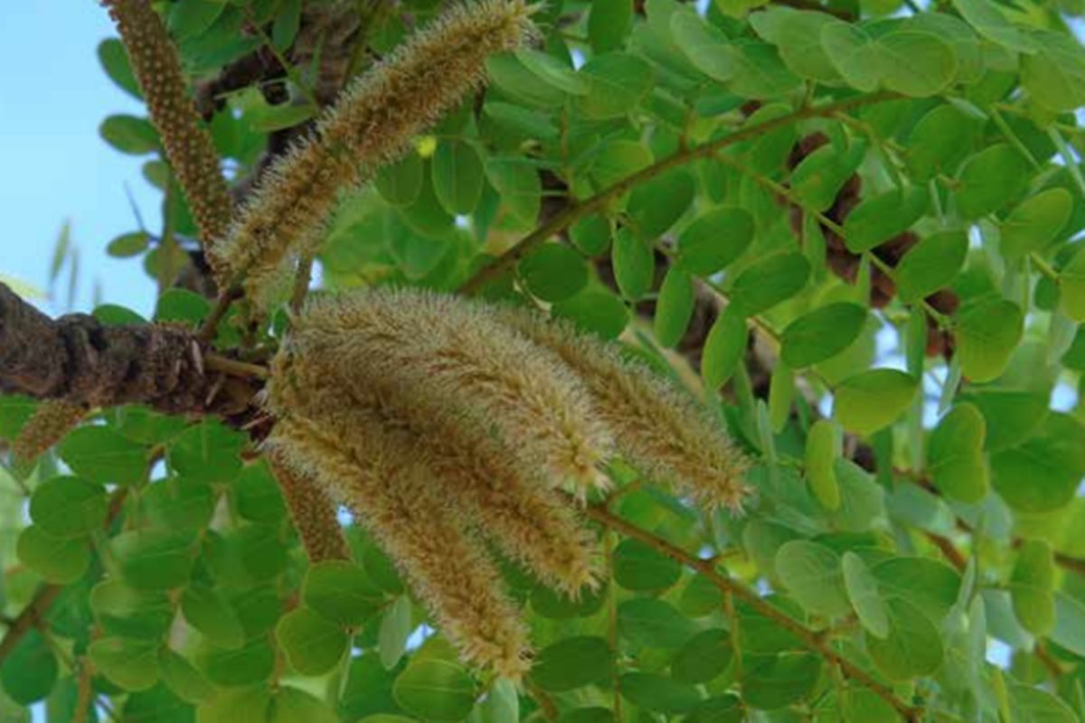 folhas e fruto da espécie Stryphnodendron adstringens conhecida como barbatimão-do-cerrado