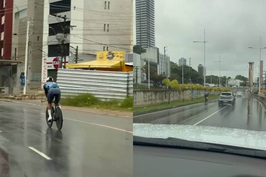Um ciclista foi filmado enquanto treinava fora dos bordos da pista, nas proximidades da Avenida Garibaldi, neste domingo (13). O homem no comando da bicicleta interrompeu o trânsito dos automóveis que foram obrigados a desviar do veículo de propulsão humana e invadir a outra via para não atingi-lo. A ação do ciclista configurou uma irregularidade de trânsito que poderia culminar num acidente.