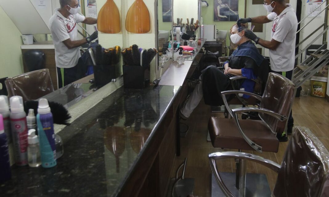 Rio de Janeiro - Salão de beleza na Tijuca funciona em reabertura antecipada do comércio de rua pela Prefeitura, com flexibilização das medidas de isolamento social pela pandemia do novo coronavírus (covid-19). (Fernando Frazão/Agência Brasil)