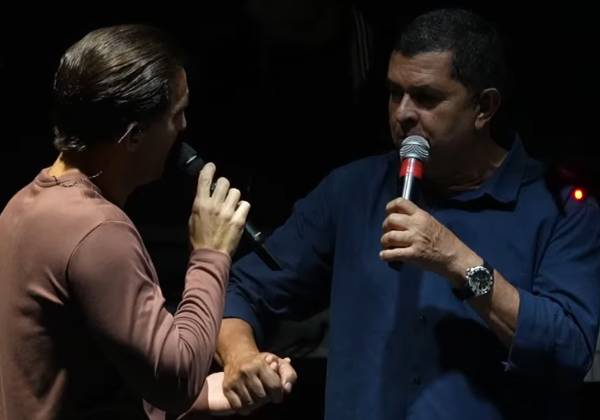 A participação foi marcada por repetições e pausas na fala. Tayrone procurou contornar a situação com cordialidade, agradeceu as palavras do deputado e retomou o show em seguida.