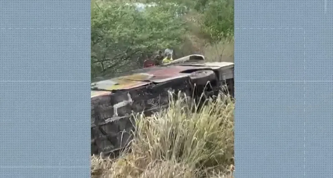 Duas pessoas morrem e nove ficam feridas após ônibus tombar no interior da Bahia