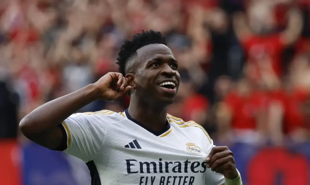 Espanha – Vini Jr exaltou o grupo após a vitória do Real Madrid sobre o Osasuna por 4 a 2, neste sábado, 16, pela 29ª rodada do Campeonato Espanhol. Em entrevista à “Realmadrid TV”, ele ressaltou o desempenho da equipe tanto no ataque quanto na defesa e afirmou que o time merengue tem feito “uma temporada brutal”.