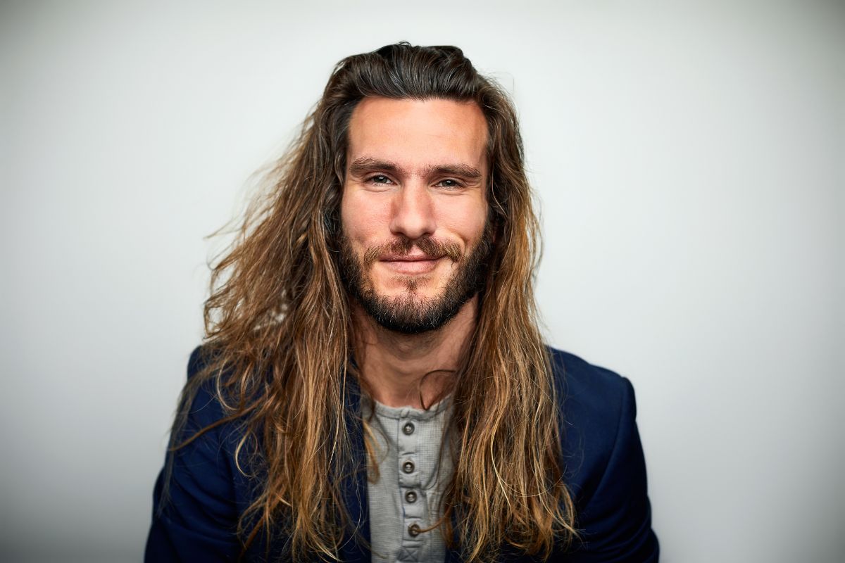 foto colorida homem com cabelos fortes e longosA alimentação equilibrada, rica em ferro, zinco e vitaminas do complexo B, é a base mais segura e eficaz para a manutenção da saúde e resistência dos fios