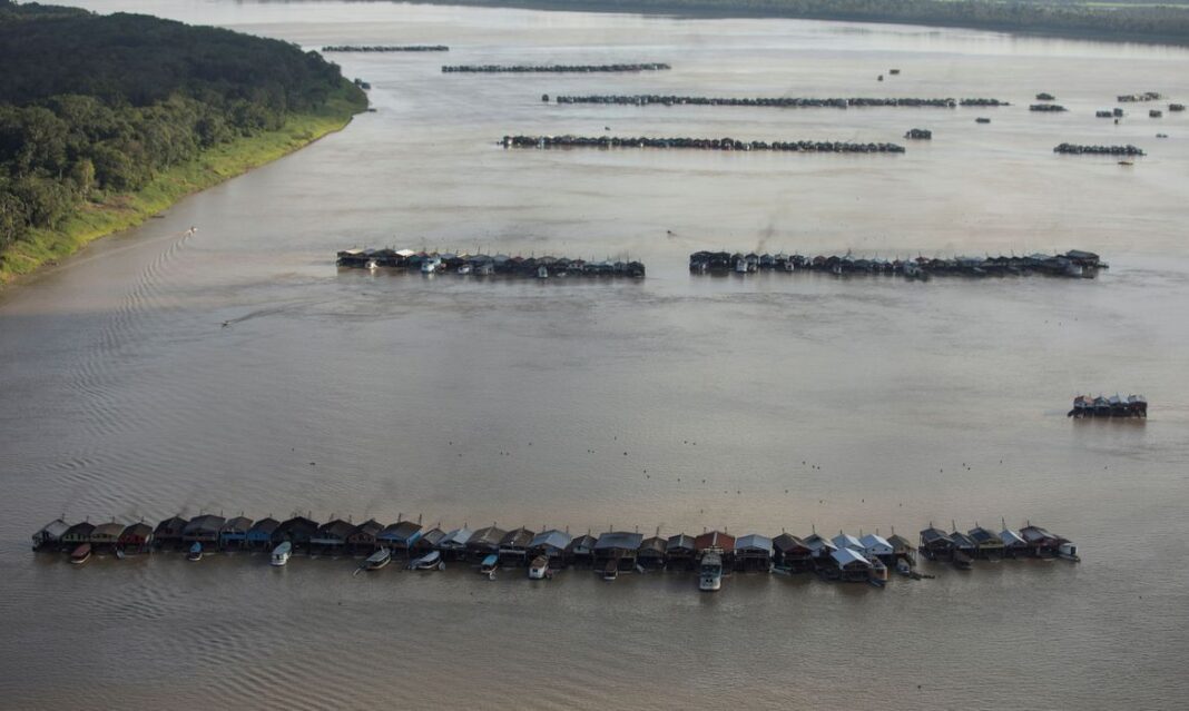 Imagens feitas por moradores da região, e divulgadas pelas redes sociais, demonstram que, em um curto espaço de tempo, centenas de embarcações se concentraram próximas à comunidade do Rosarinho, em Autazes, formando como que um bairro flutuante.
