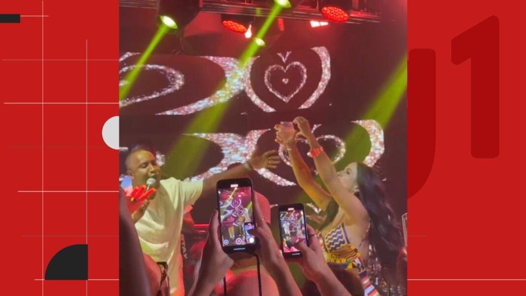A celebração foi animada pela banda AraKetu e Thiaguinho deu uma “palhinha” ao lado do vocalista Guga Cammafeu. Diante dos convidados, ele se declarou para a aniversariante ao som de “Minha razão de viver”, clássico do axé music.