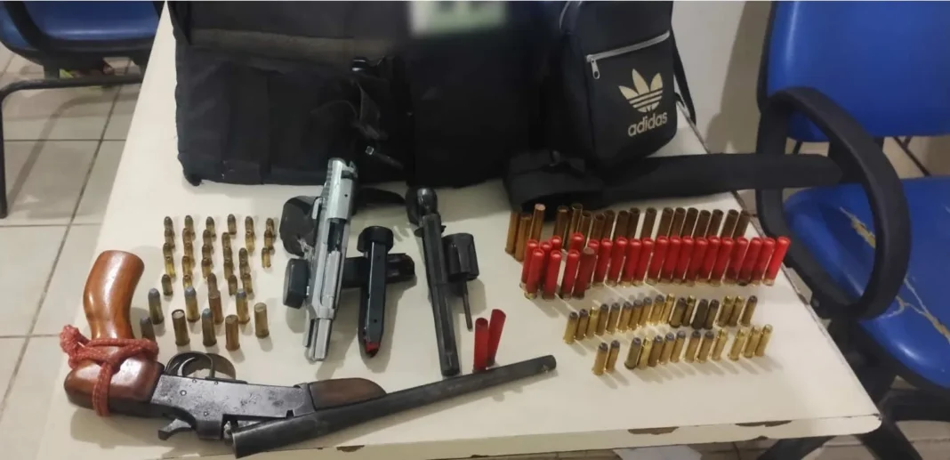 Caso aconteceu em Porto Seguro. Suspeito apresentou apenas o registro de uma das três armas. Homem é preso com armas, munições e coletes balísticos no extremo sul da Bahia Divulgação/Polícia Militar Um homem, que se identificou como guarda municipal de Una, foi preso, em flagrante, com armas, munições e coletes balísticos, na cidade de Porto Seguro, no extremo sul da Bahia. Segundo a Polícia Militar, o caso aconteceu na quinta-feira (23), quando agentes da CIPPA/PS, em ação em conjunto com fiscais do Instituto Chico Mendes de Conservação da Biodiversidade (ICMBio), apreenderam três armas, quando abordavam um grupo de catadores de guaiamum, espécie ameaçada de extinção que está com a captura restringida. Com o suspeito foram encontrados um revólver Calibre .38 com seis cartuchos, uma pistola Calibre .380 com dois carregadores e uma espingarda de cano curto Calibre .36. Também foram apreendidos 30 munições Calibre .38 intactas, 23 munições Calibre .36 recarregadas, nove munições Calibre .44, vinte e oito munições Calibre .380 e um par de coletes balísticos. Questionado, sobre o material bélico, o suspeito apresentou apenas o Certificado de Registro (CRAF) da pistola .380. Ele e todo o material bélico encontrado foram levados à Delegacia Territorial (DT) de Ilhéus. Veja mais notícias do estado no g1 Bahia. Assista aos vídeos do g1