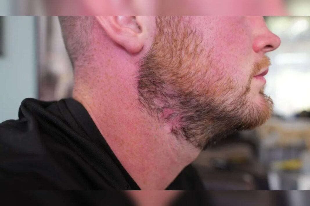Após drenar o abcesso, Geraint ficou com uma cicatriz no pescoço