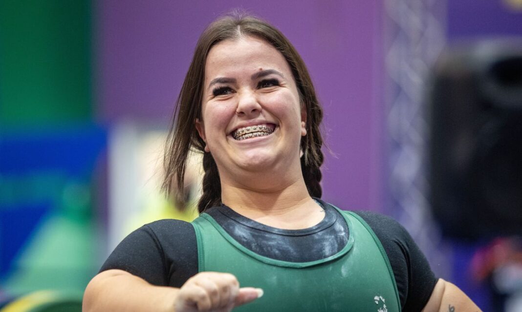 Na primeira tentativa, ela levantou 141 kg. Na sequência, tentou 146 kg e teve êxito. E, na última oportunidade, colocou 151 kg na barra e também levantou com sucesso.