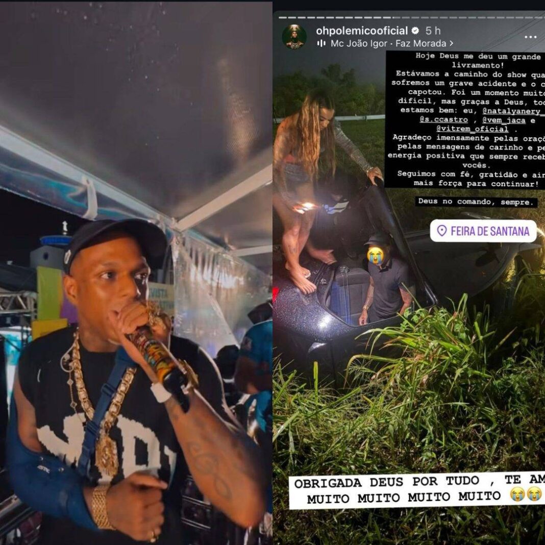 O veículo em que o artista estava capotou a caminho da cidade. As circunstâncias do acidente ainda não foram detalhadas pela equipe, mas os fãs foram tranquilizados: “Ele está bem, já foi atendido e já está no trio pra cumprir a agenda”.