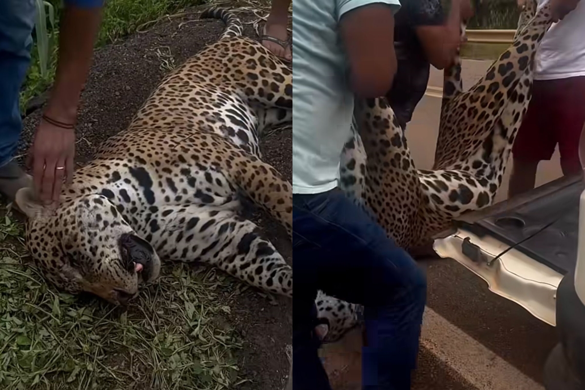 Um grupo de indígenas do povo Xavante encontrou uma onça-pintada que foi atropelada na BR-070, perto da cidade de Primavera do Leste, em Mato Grosso, no último domingo (4/1). Veja vídeo: