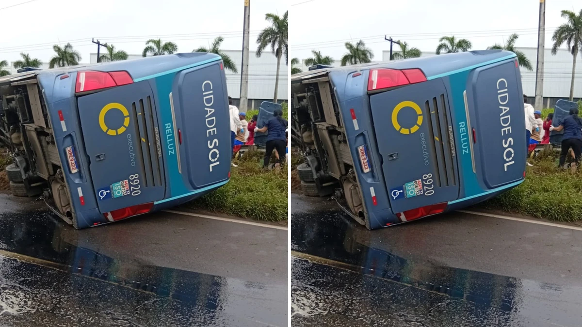 Um ônibus da empresa Cidade Sol tombou no início da tarde desta quinta-feira (4), no km 527 da BR-324, em Feira de Santana. Segundo a Polícia Rodoviária Federal (PRF), não há registro de mortes.