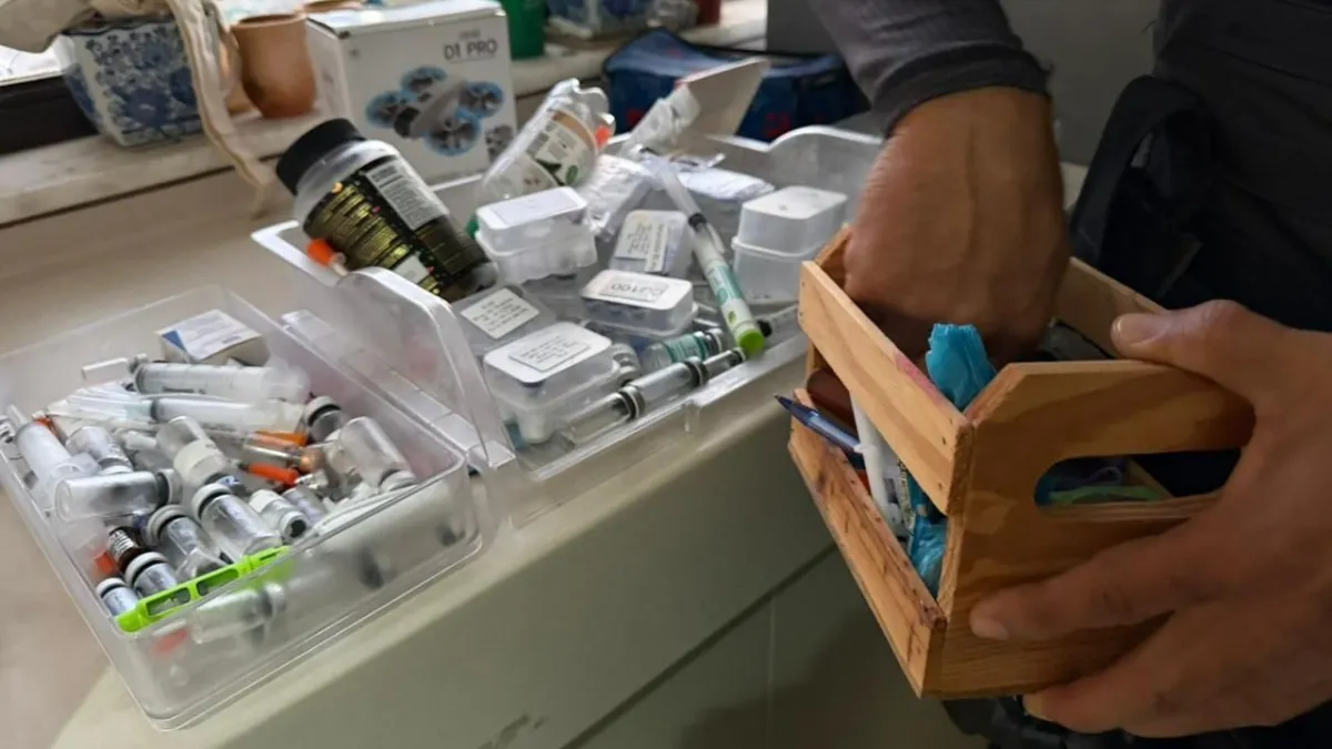 Um dentista, apontado como principal investigado, foi localizado em um apartamento na região da Ladeira da Barra. No imóvel, os policiais encontraram diversas canetas usadas para emagrecimento e outras substâncias consideradas irregulares. O suspeito e a esposa foram levados à delegacia.