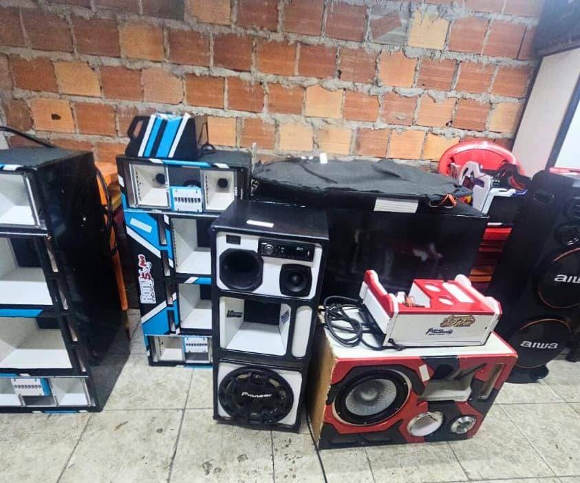 O material sonoro encontrado no veículo foi recolhido pela Sedur.