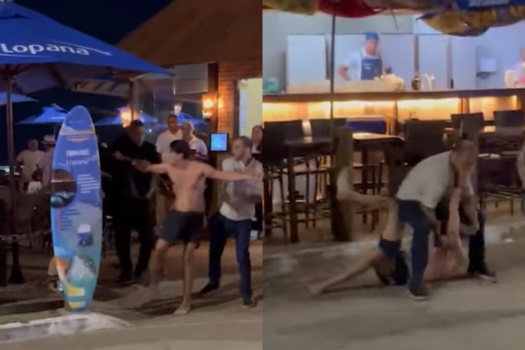 A confusão se agravou quando o cliente partiu para cima de uma funcionária do estabelecimento. Pessoas que estavam no local tentaram contê-lo com chutes e socos. Após a agressão, seguranças agiram de forma truculenta para imobilizar o rapaz.