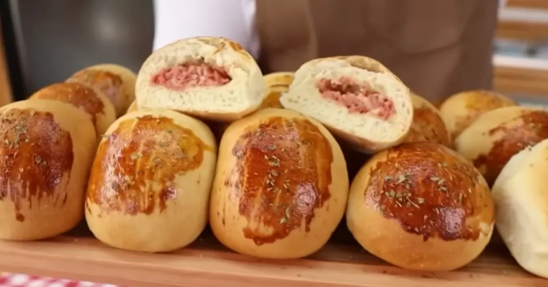 Sabe aquele cheirinho de pão caseiro que toma conta da cozinha e parece abraço? Esse pão de batata tem exatamente essa vibe, bem “casa de vó”, só que com um toque bem brasileiro: calabresa e requeijão no recheio.