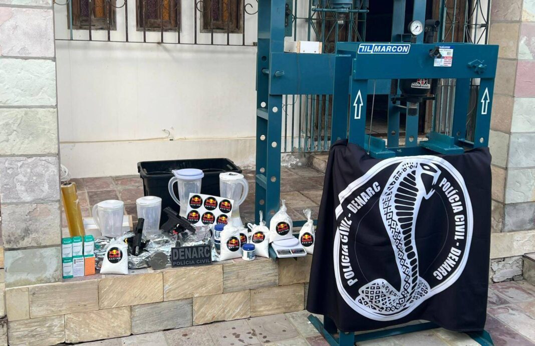 A prisão ocorreu durante a Operação Forasteiro, deflagrada pela Polícia Civil de Goiás, com apoio de policiais da Bahia, Paraná, Mato Grosso e Mato Grosso do Sul. No imóvel em Lauro de Freitas, os policiais apreenderam duas prensas hidráulicas, duas pistolas, porções de cocaína, insumos químicos e dois veículos de luxo.