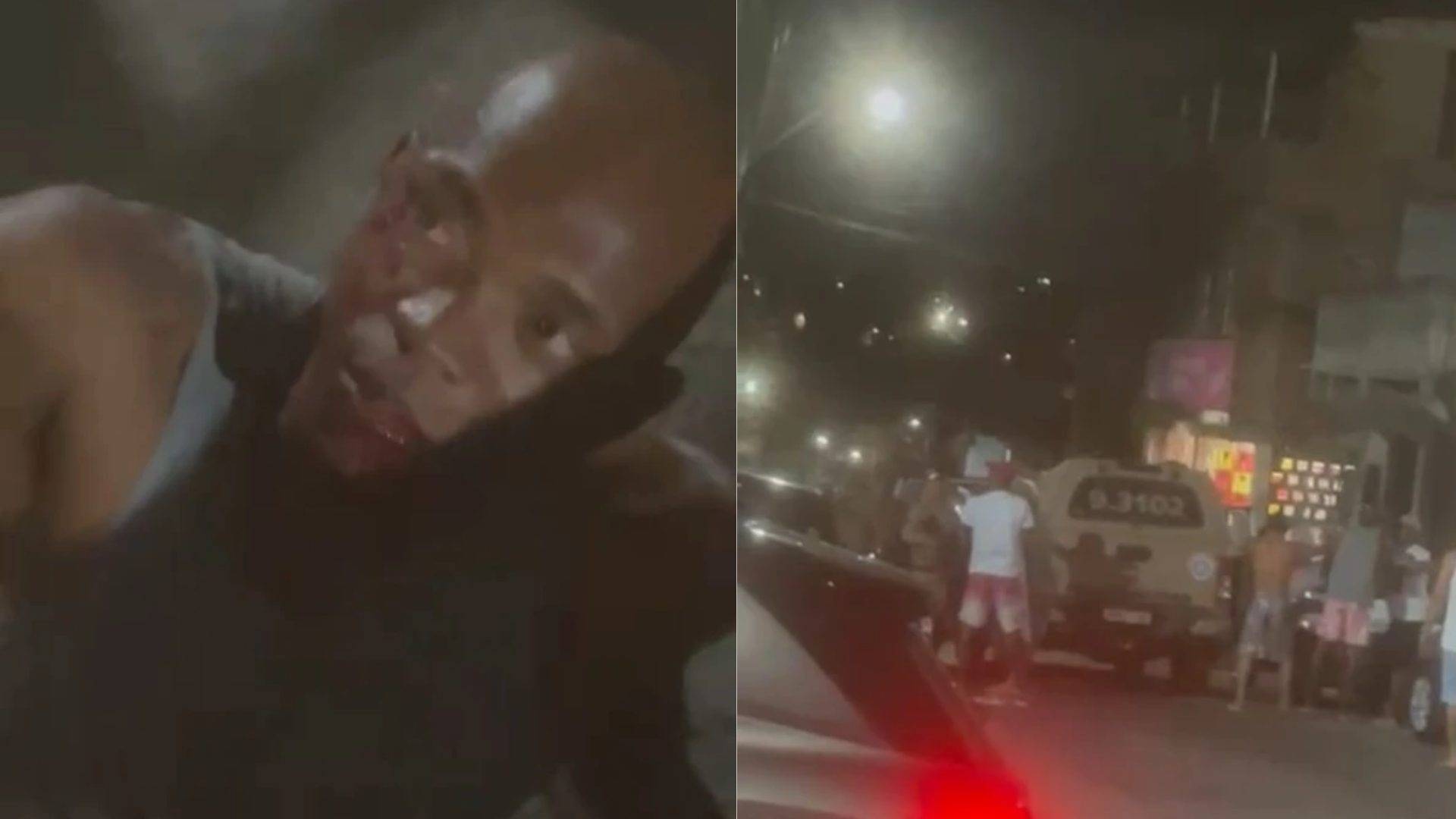 Um policial militar foi flagrado agredindo um manifestante com uma coronhada no rosto durante um protesto pacífico na Rua das Palmeiras, no bairro de Valéria, em Salvador, na noite de sábado (15). O vídeo que circula nas redes sociais mostra o momento em que o PM atinge o homem, identificado como Júnior, irmão de Matheus Silva Ribeiro dos Santos, morto após ser baleado em 11 de novembro. Após a agressão, os policiais retornaram para a viatura e deixaram o local.