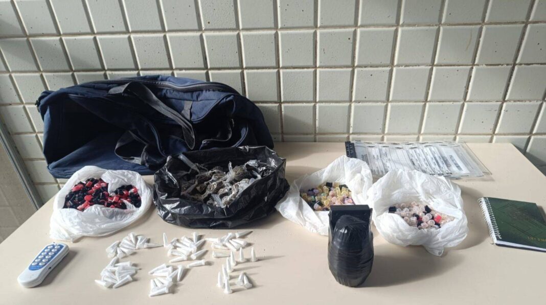 Os agentes realizam o cerco e conseguiram prender o homem que estava em posse de um explosivo, 500 pinos de crack, 60 frascos contendo cocaína e 50 porções de maconha. O suspeito e o material apreendido foram encaminhados à unidade especializada da Polícia Civil, onde a ocorrência é registrada.