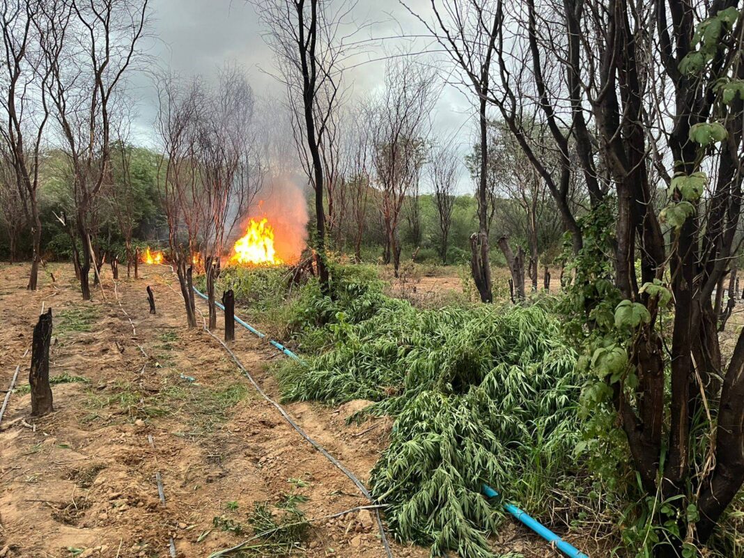 Todo o material foi incinerado no próprio local, conforme protocolo, após a coleta de amostras que foram encaminhadas às autoridades responsáveis para os devidos procedimentos legais. Nenhum suspeito foi detido durante a ação.