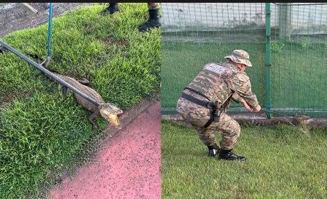 A guarnição foi acionada após relatos da presença do réptil na pista. Ao chegar ao local, os agentes realizaram a contenção do animal com segurança, evitando riscos para motoristas e pedestres que circulavam pela região.