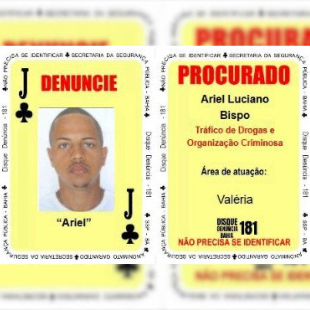 A Polícia Civil da Bahia captura um dos criminosos mais procurados do estado, Ariel Luciano Bispo, que integra o Baralho do Crime da Secretaria da Segurança Pública (SSP-BA), como o Valete de Paus. Ariel foi preso na manhã desta sexta-feira (11), dentro de uma escola em Lauro de Freitas, na Região Metropolitana de Salvador (RMS).