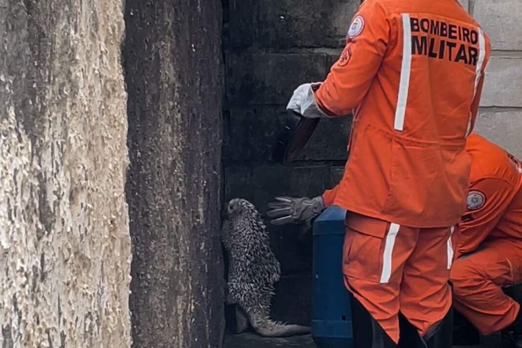Um porco-espinho foi capturado por bombeiros da 3ªCIA BM, em Senhor do Bonfim, pertencente ao 9° BBM, de Juazeiro. O animal estava num estabelecimento comercial em Senhor do Bonfim, nesta terça-feira (9) quando foi avistado por populares que acionaram os bombeiros.