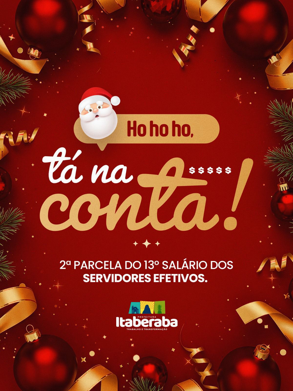 A Prefeitura de Itaberaba antecipou para esta quinta-feira (11) o pagamento da segunda parcela do décimo terceiro salário dos servidores municipais. A iniciativa reforça o compromisso da gestão com a valorização do funcionalismo público e assegura maior tranquilidade financeira às famílias itaberabenses neste fim de ano.
