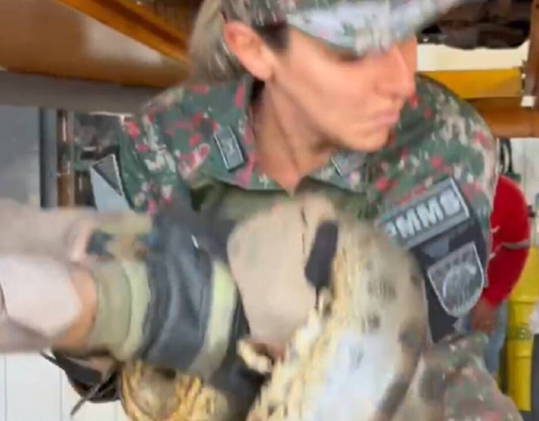 Ao flagrar a serpente, a proprietária do veículo acionou rapidamente a Polícia Militar Ambiental (PMA) para realizar o resgate.