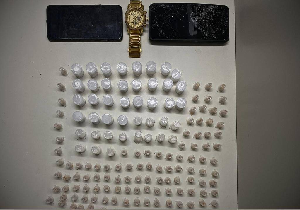 Durante as buscas, um dos homens foi localizado e detido. Com ele, os agentes apreenderam 117 pedras de crack e 43 frascos de cocaína.