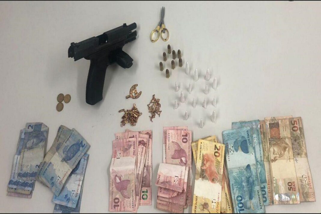 Com o suspeito foram apreendidos uma pistola calibre 9mm, um carregador com sete munições e 15 porções de cocaína.