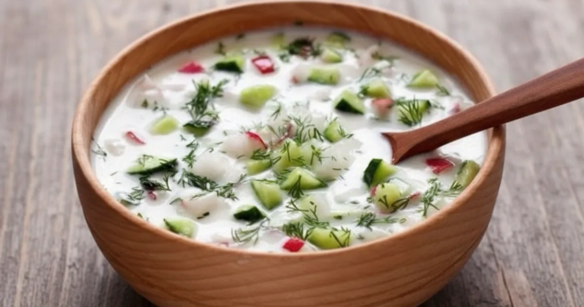Ela combina legumes picados, proteína leve e uma base líquida refrescante, geralmente com kefir, kvass ou iogurte diluído.
