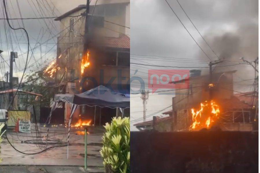 Mesmo com a chuva que atinge a cidade, as chamas resistiram e se espalharam pela fiação. Vídeos registraram o momento em que os cabos caíram sobre a rua, enquanto moradores tentavam afastar objetos próximos do incêndio.