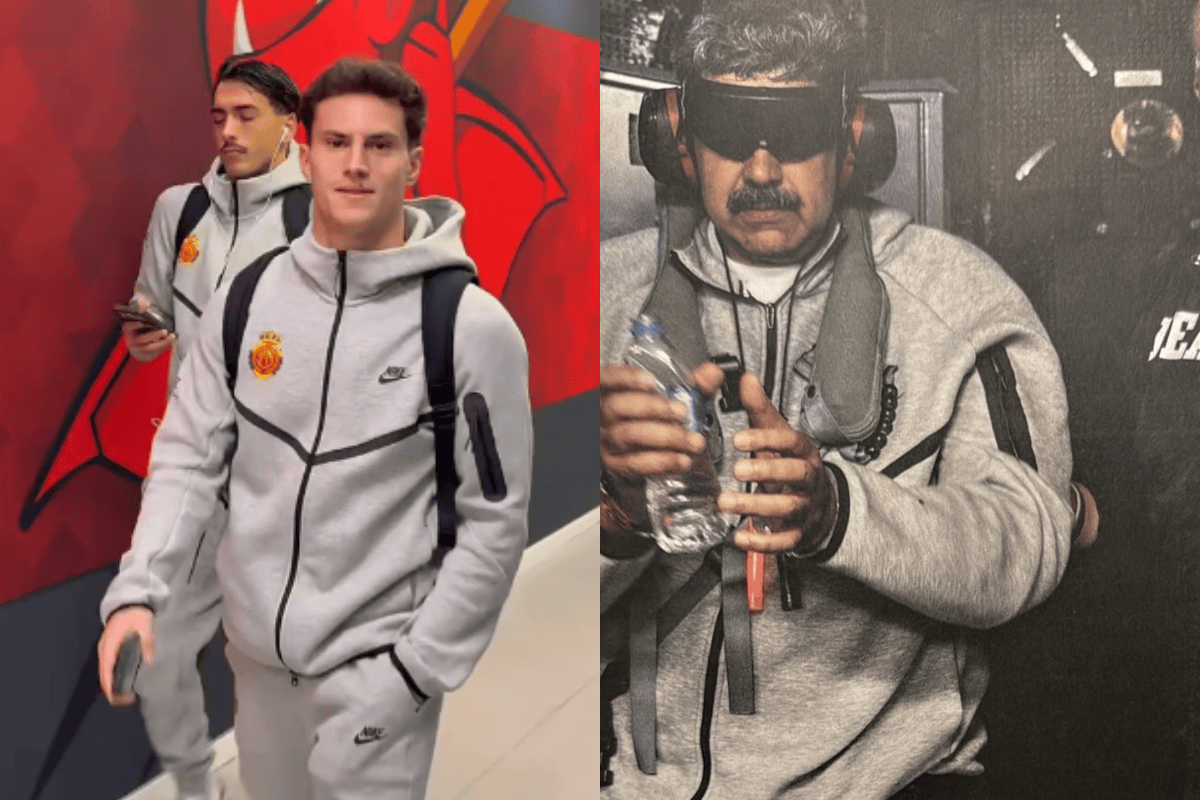 O time espanhol Real Club Deportivo Mallorca compartilhou, nas redes sociais, o momento em que seus jogadores chegam a um estádio para a partida contra o Girona Futebol Clube. A princípio simples, o vídeo chamou a atenção pelo fato de os jogadores estarem usando o mesmo conjunto de moletom da Nike que o ex-governante da Venezuela, Nicolás Maduro, usava ao ser capturado pelos Estados Unidos, no sábado (3/1).