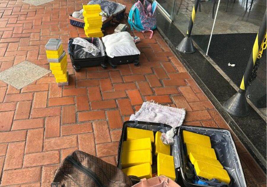 O ônibus foi parado por equipes táticas e revistado. Durante a inspeção, os tabletes de cocaína foram localizados em compartimentos de bagagem, acondicionados em malas.
